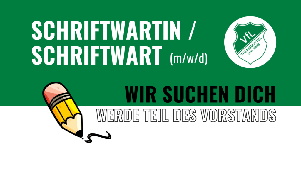 Der VfL Tremsbüttel ist auf der Suche nach engagierter Unterstützung für die Vorstandsarbeit. Aktuell wird eine Person für das Amt der Schriftwartin bzw. des Schriftwarts gesucht. Die Position spielt eine wichtige Rolle im Vereinsleben und umfasst insbesondere organisatorische und dokumentarische Aufgaben. Zu den Aufgaben gehören unter anderem: Das solltest du mitbringen: Das Amt bietet die […]