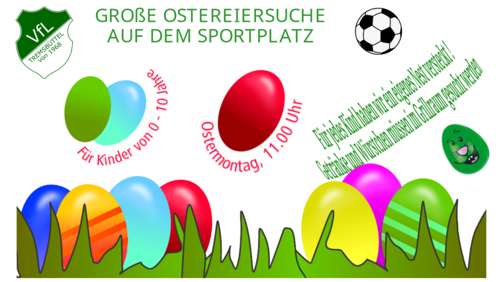 Also schnappt euch eure Eltern, Großeltern oder Freundinnen und Freunde und macht euch bereit für ein spannende Ostersuche auf dem Sportplatz.